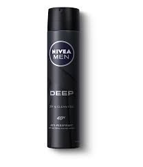 NIVEA MEN DEEP: (Anti-perspirant ) protects the skin from sweat and bacteria for a long-lasting dryness and a clean skin feel just like after the shower. The effective formula with Black Carbon acts powerfully against bacteria and is complemented by a modern and masculine Dark Wood fragrance.